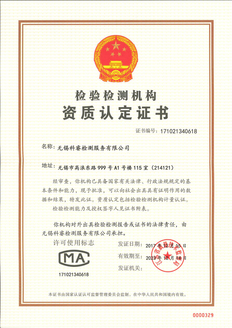 2010年取得CNAS證書(shū),是無(wú)錫較早取得證書(shū)的民營(yíng)第三方檢測(cè)公司,2014年獲得江蘇省民營(yíng)科技企業(yè)的稱號(hào),2017年獲得檢驗(yàn)檢測(cè)機(jī)構(gòu)資質(zhì)認(rèn)定證書(shū)(CMA)等多項(xiàng)榮譽(yù)資質(zhì)。 科睿檢測(cè)始終追求先進(jìn)科學(xué)的技術(shù),過(guò)硬質(zhì)量,貼心售后服務(wù)贏得了良好的市場(chǎng)口碑,客戶總數(shù)已達(dá)到1000 家以上,中國(guó)500強(qiáng)企業(yè)已超過(guò)100家。